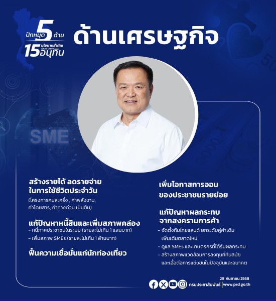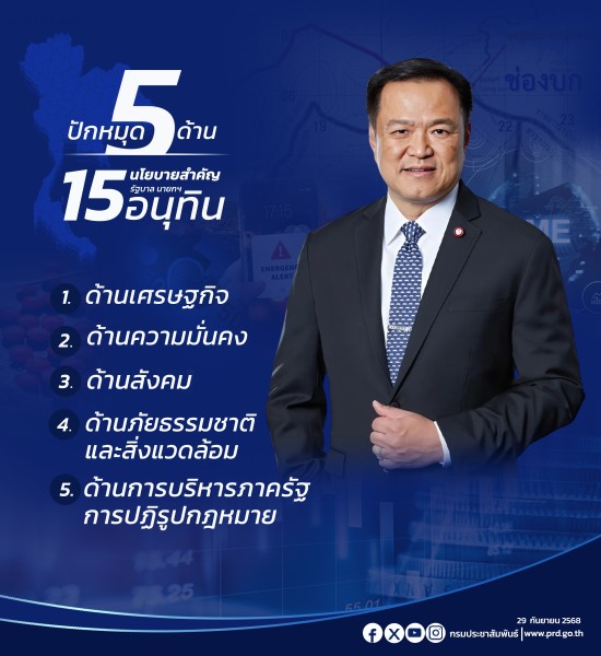 5 ด้าน 15 นโยบายสำคัญ "รัฐบาลนายกฯ อนุทิน"